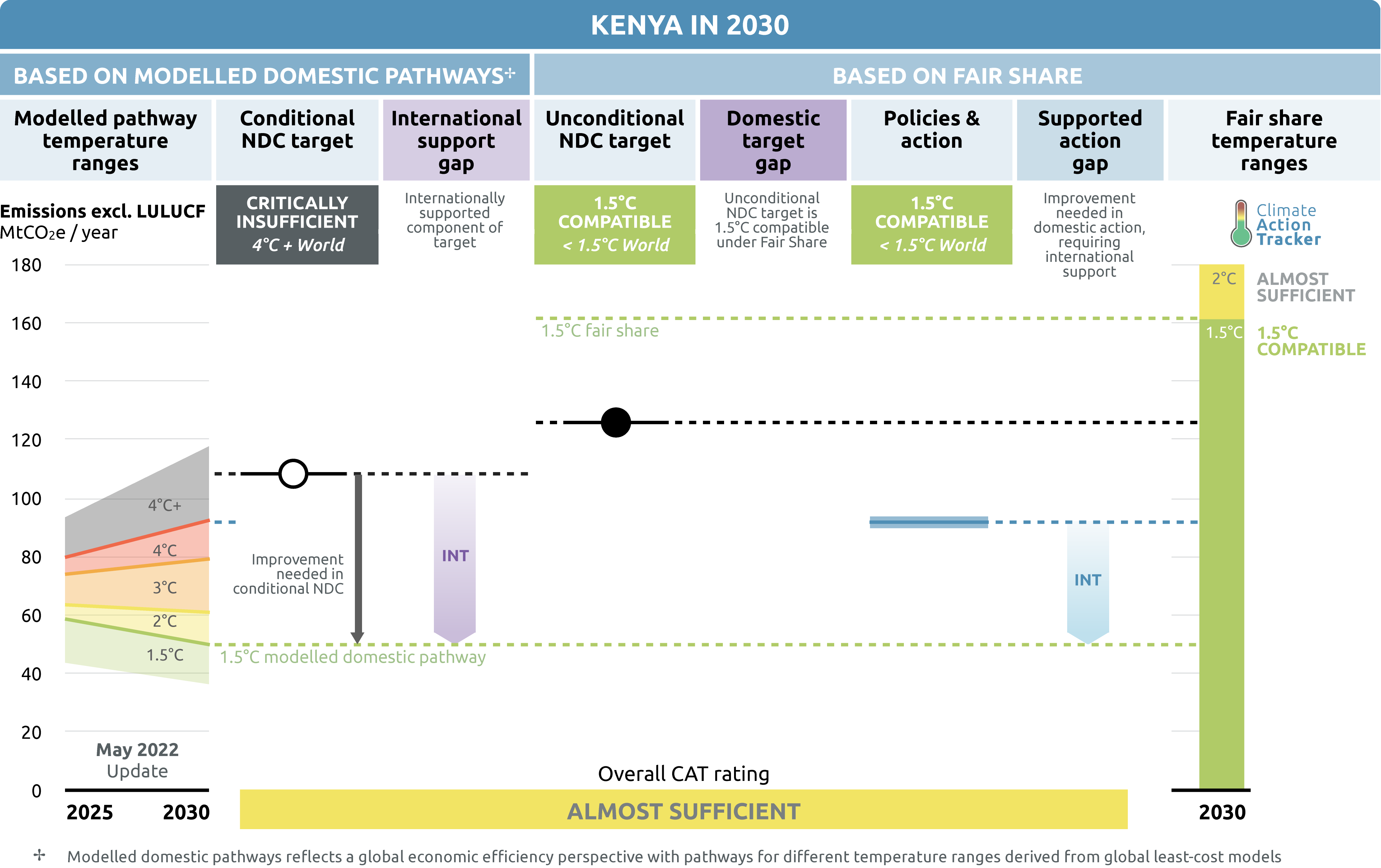 The CAT’s current policy projections for Kenya covers a range of GHG emissions pathways.